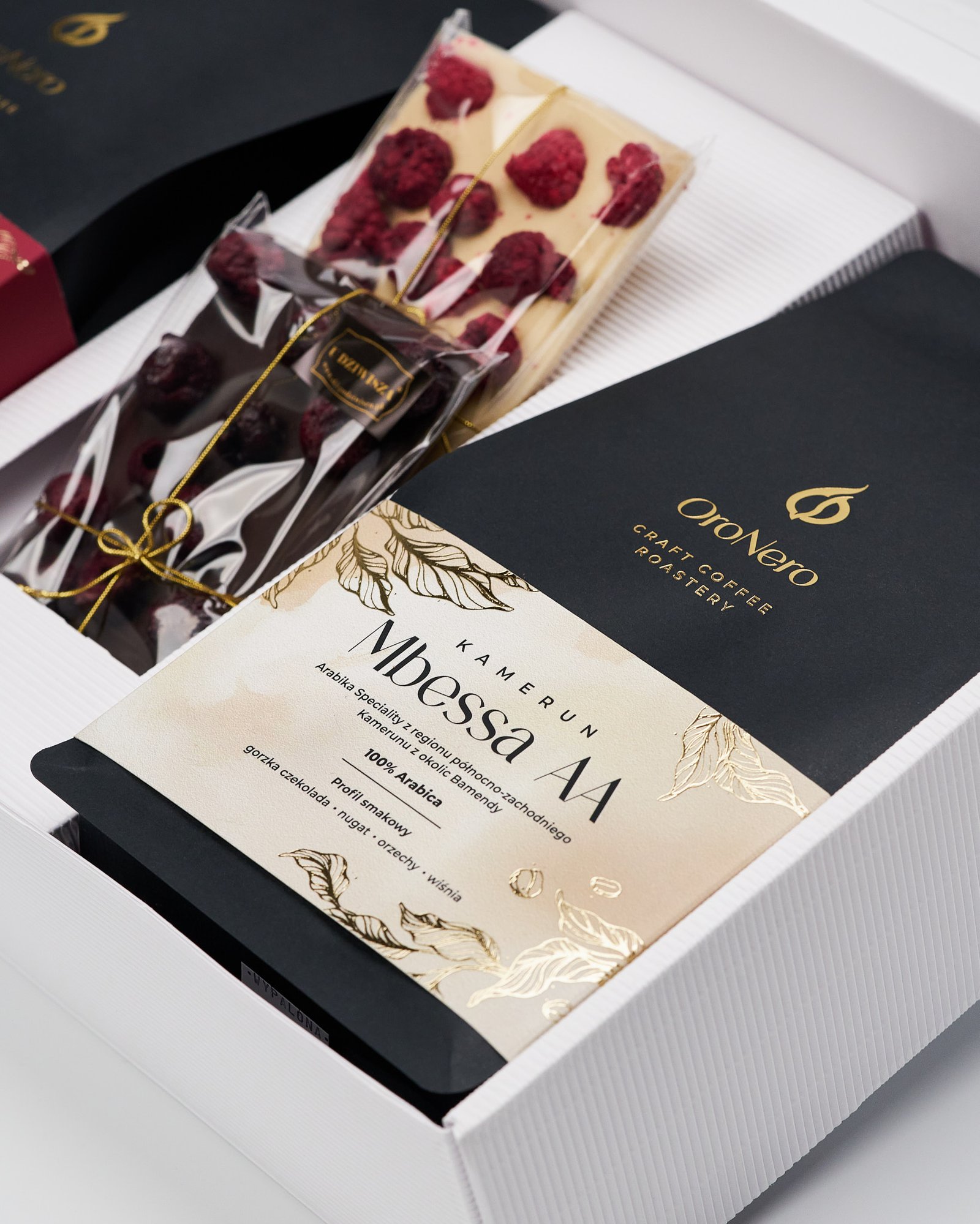 Całość zapakowana jest w białe, eleganckie pudełko z tektury falistej z dopasowaną wkładką, która zabezpiecza produkty przed przemieszczaniem się. Dodatkowo opakowanie ozdobione jest stylową obwolutą, nadającą mu szyku i charakteru.
